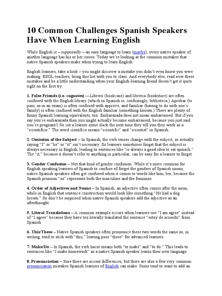 10 Common Challenges Spanish English Grammatical Gender