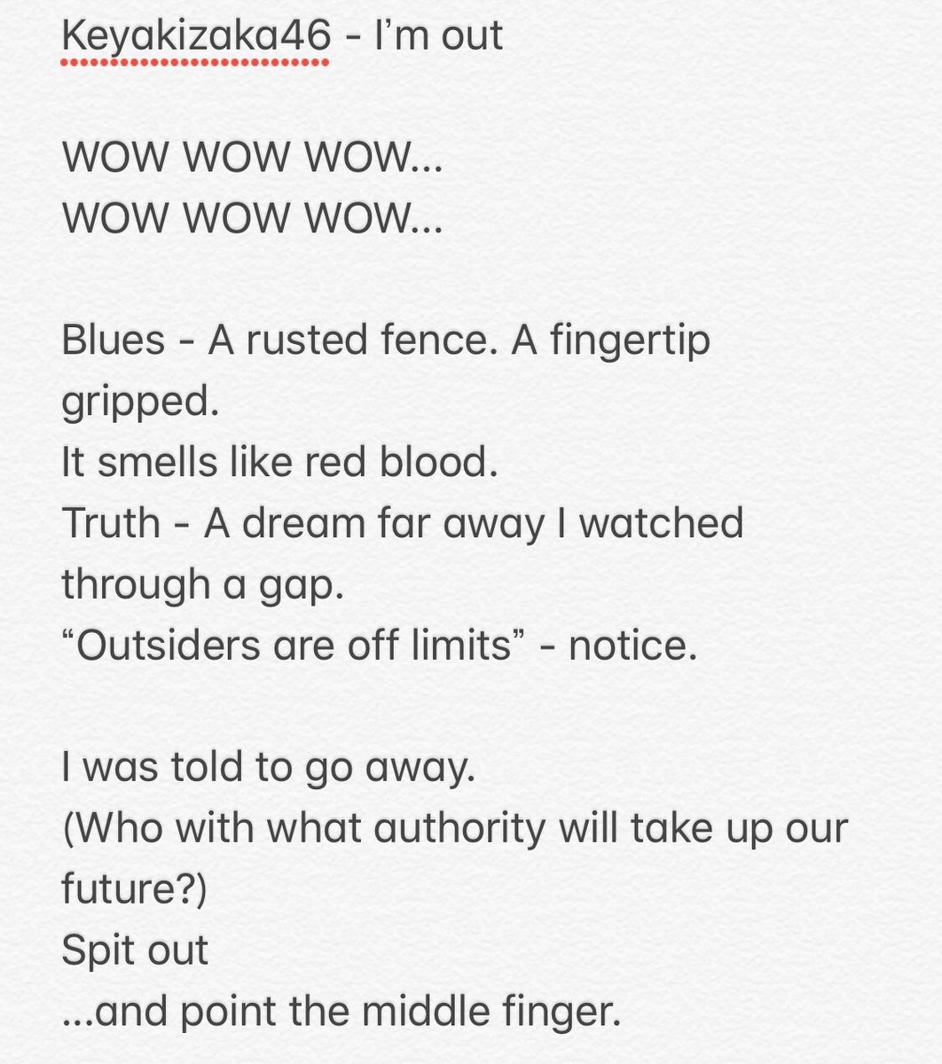 𝐒𝐇𝐈𝐍𝐒𝐄𝐈 On Twitter Keyakizaka46 I M Out Lyrics English