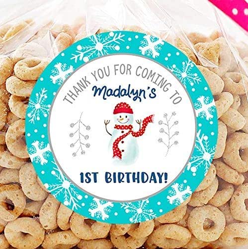 Amazon Com Winter Birthday Personalized Stickers Birthday Favor Stickers Thank You For Coming 1st Birthday Treat Bags Sheet Of 12 Or 24 Handmade