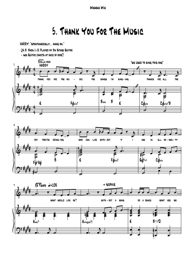 Thank You For The Music Piano Transcription Mama Mia Andrew
