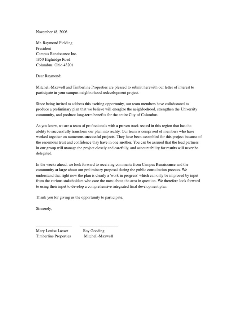 Letter Of Interest To Participate In A Project Business
