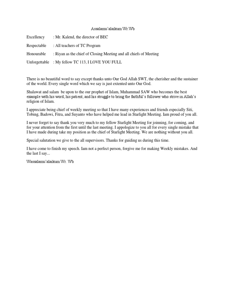 Speech Chief Closing Meeting Religious Behaviour And Experience