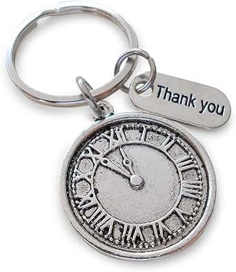 Amazon Com Bronze Clock Keychain With Thank You Tag Volunteer