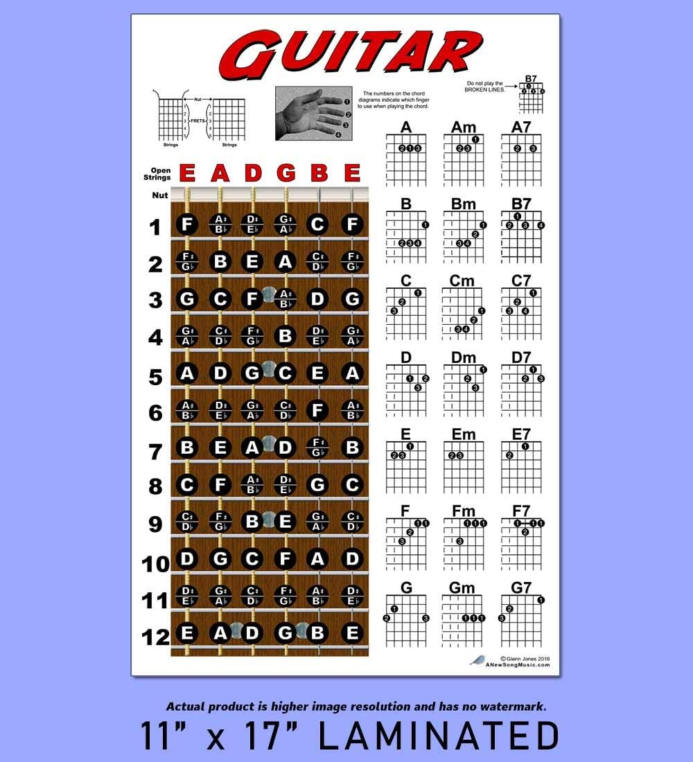 Amazon Com A New Song Music Guitar Fretboard And Chord Chart