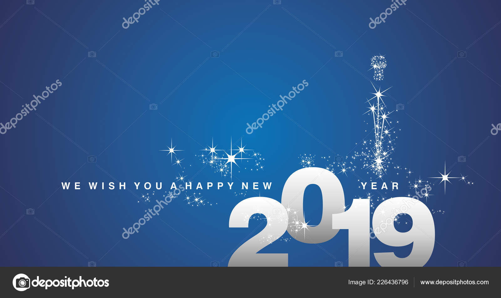 Wish You Happy New Year 2019 Silver Blue Greeting Card Stock